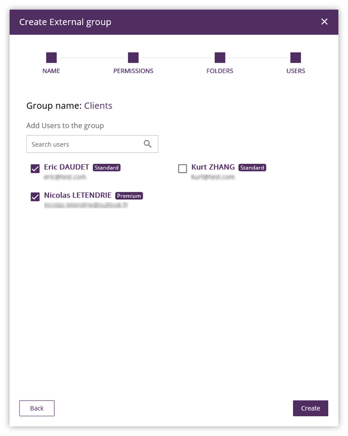 7. Add the External Users that will be part of the group