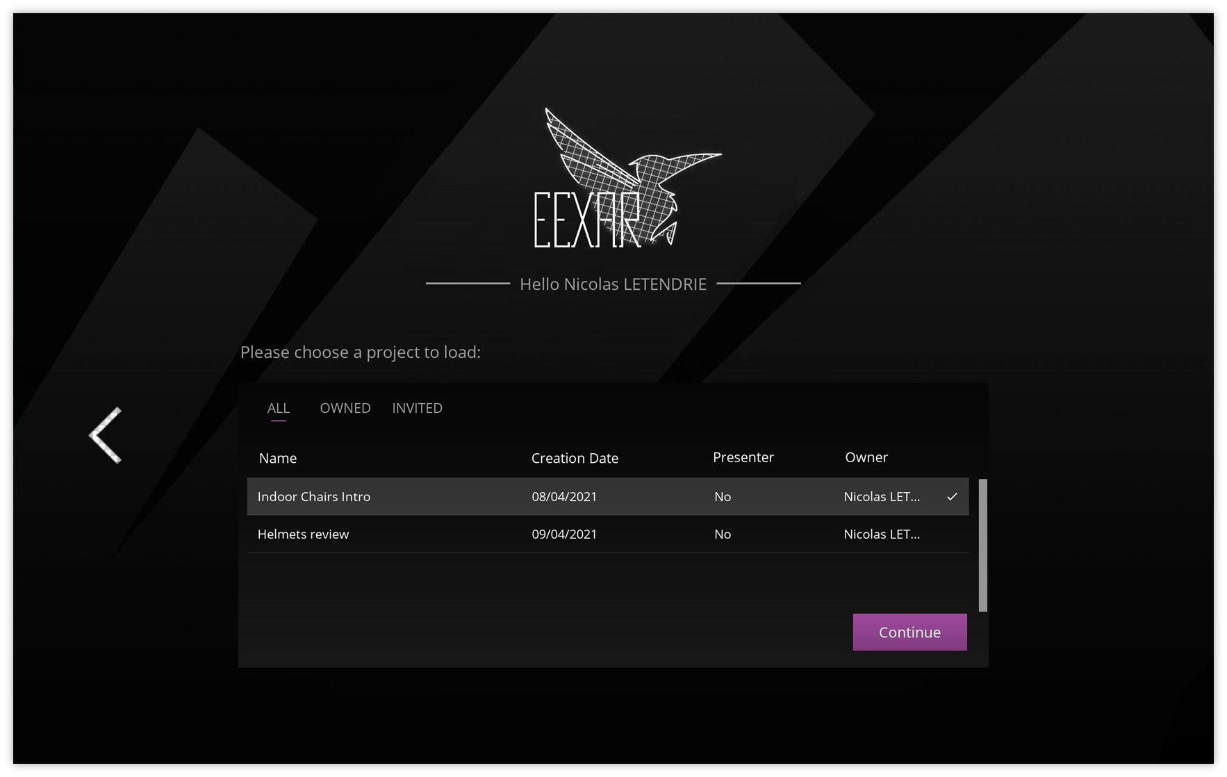 Projects containing a Augmented Reality or a Negotiation session can be accessed through the mobile application, the purpose remains the same: gather specific user(s) around a specific presentation of specific products. The added value that sessions launched with the mobile application brings is that users can assume the role of Presenter while other users will join as Attendee, in this scenario the Presenter will be capable of guiding the audience and control the path of the presentation directly from his/her device.